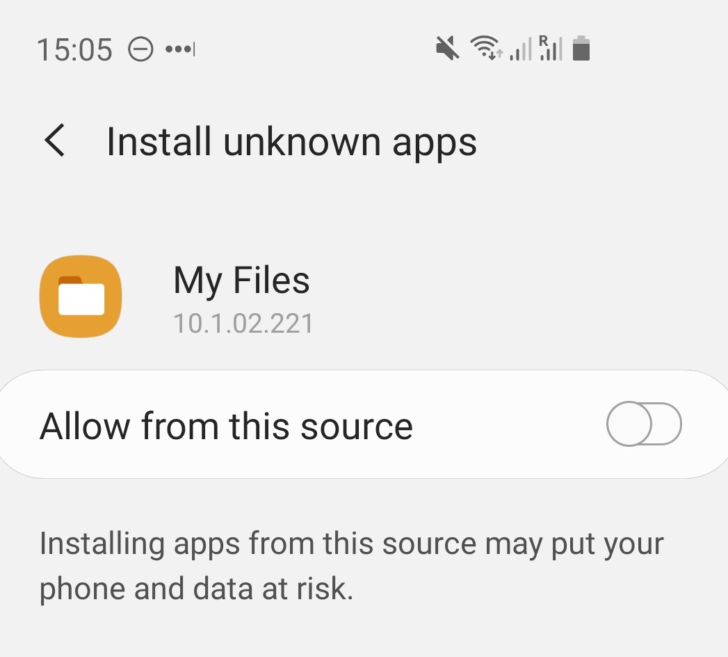 4. Enable Allow from this source, then tap the back button to resume installation.